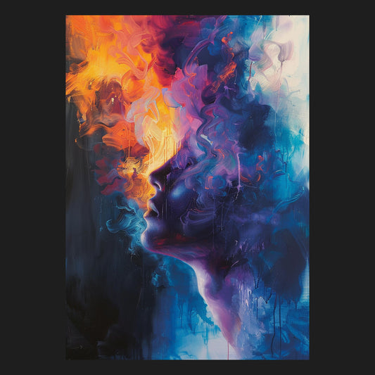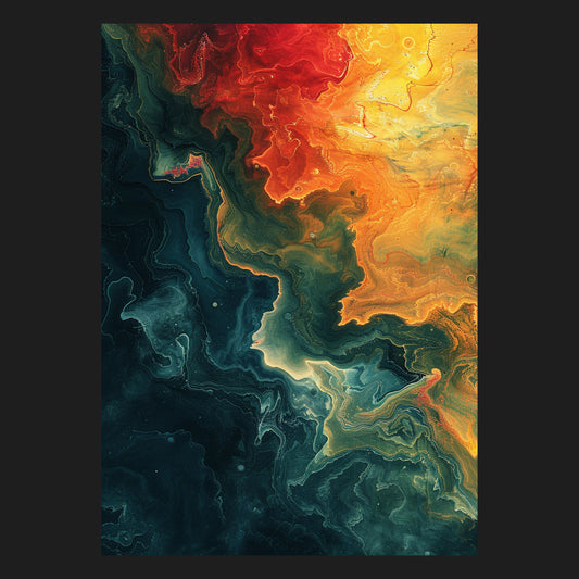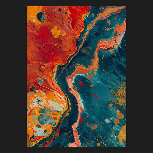 Abstrakte Farbmischung - Poster mit Echtholzrahmen und Acrylglas