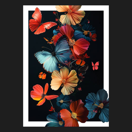Schmetterlingsblumen - Poster mit Echtholzrahmen und Acrylglas