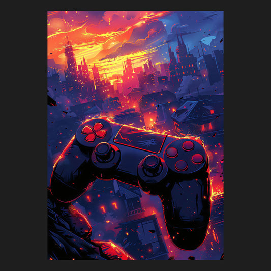 Gaming City Nights - Poster mit Echtholzrahmen und Acrylglas