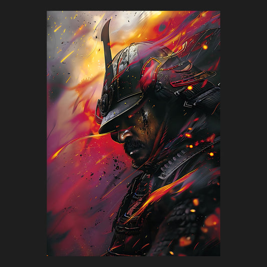 Cyberpunk Samurai - Poster mit Echtholzrahmen und Acrylglas