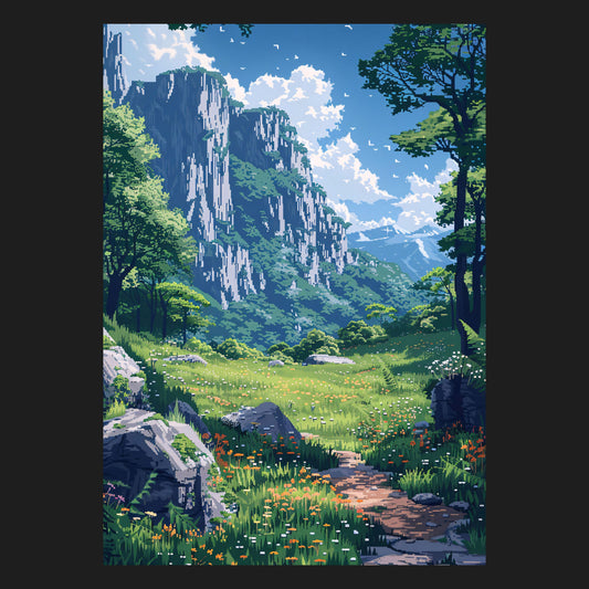 8-Bit Traumlandschaft - Poster mit Echtholzrahmen und Acrylglas
