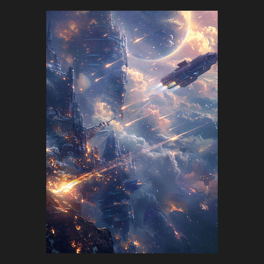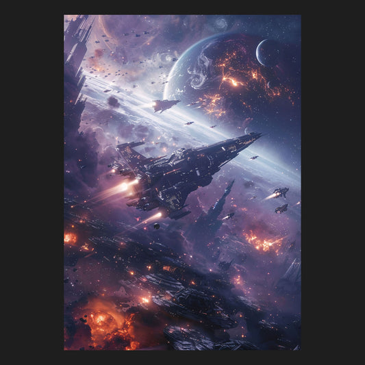 Galaktische Schlacht - Poster mit Echtholzrahmen und Acrylglas
