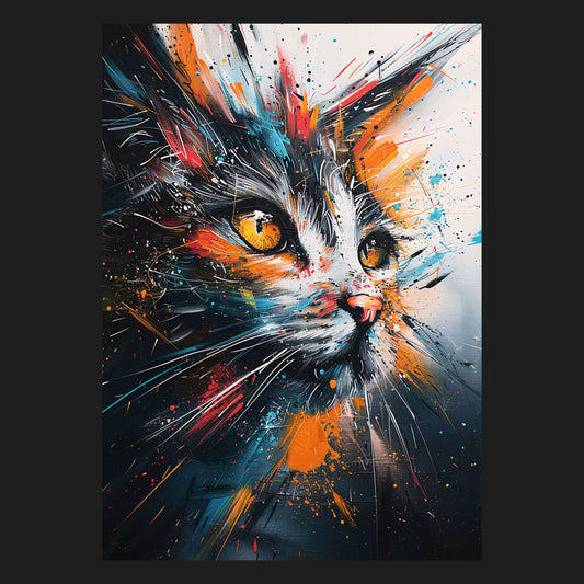 Abstrakte Eleganz der Katze - Poster mit Echtholzrahmen und Acrylglas